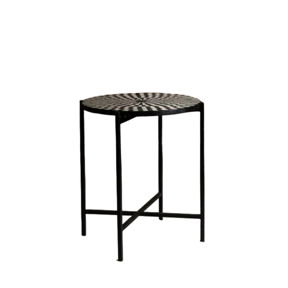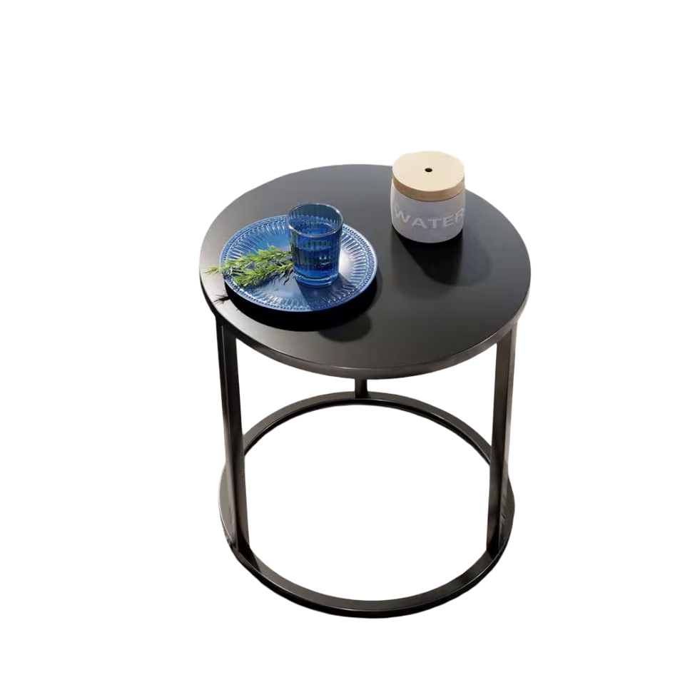 โต๊ะเหล็กด้านข้างสำหรับห้องนั่งเล่นแบดอมีเสื้อโค้ทสีดำตกแต่งโต๊ะข้างสำหรับบ้านและสำนักงานที่ทันสมัยทำด้วยมือ