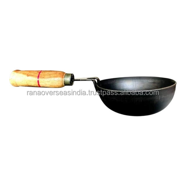 กระทะเหล็กทาดก้าพร้อมด้ามจับไม้ เป็นมิตรกับสิ่งแวดล้อม ใช้ได้กับเตาแก๊สและเตาแม่เหล็กไฟฟ้า ดีไซน์คลาสสิก