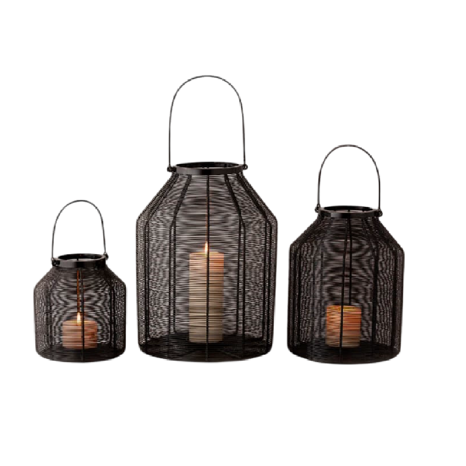 เชิงเทียนลวดตาข่ายแบบเดี่ยวพร้อมที่จับแจกันเคลือบผงสีดำสำหรับตกแต่งบ้าน