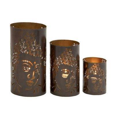 Iron tea light votive holder with artistic laser cut design for bedroom table or sideboard decoration