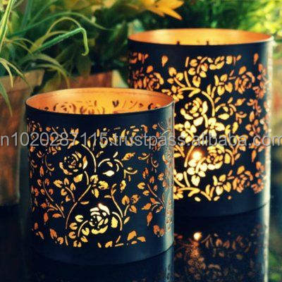เชิงเทียนเหล็กพร้อมลวดลายดอกไม้ตัดด้วยเลเซอร์รูปดอกไม้หรูหราเพื่อเพิ่มเสน่ห์ในห้องนอนหรือพื้นที่สมาธิ