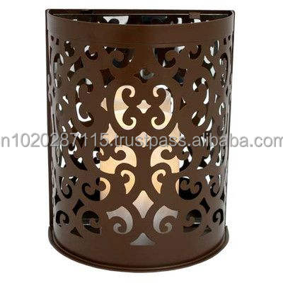Iron votive candle holder with elegant laser cut work designed to project floral shadow effects on surrounding walls
