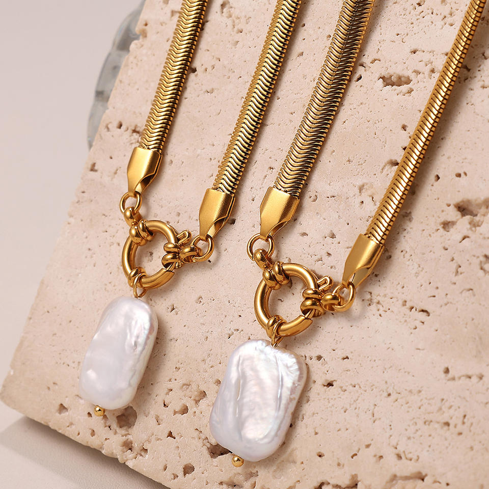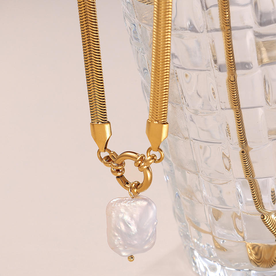สร้อยคอมุกน้ำจืดทรงไม่สม่ำเสมอ โซ่ทองรูปงู เครื่องประดับสำหรับผู้หญิงใส่ได้ทุกวัน