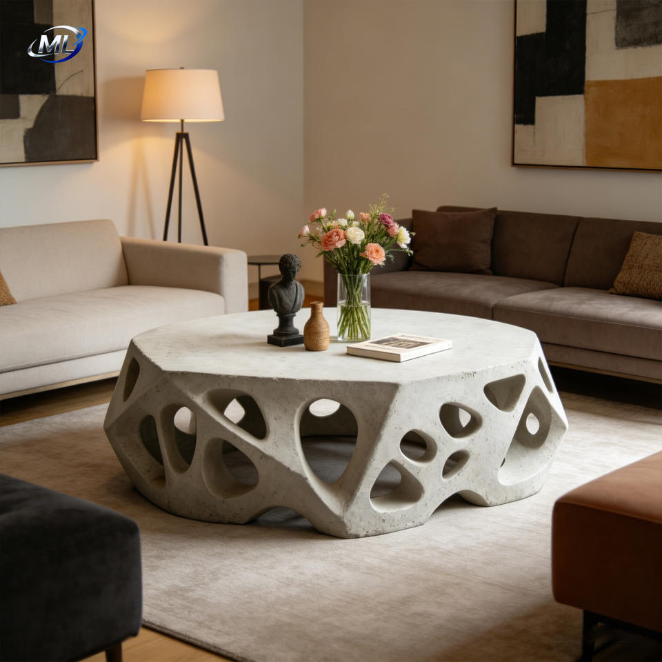โต๊ะกาแฟดีไซน์ทันสมัยสีเทา GRC รูปทรงแปลกตา ทนทาน เหมาะสำหรับห้องนั่งเล่น เฟอร์นิเจอร์ตกแต่งบ้าน