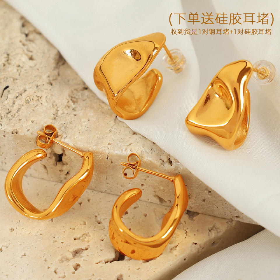 ต่างหูทรงเรขาคณิตไม่สมมาตร สีทองและสีเงิน สำหรับผู้หญิง สวมใส่ได้ทุกวัน ทำจากไทเทเนียมสตีล รุ่น EH291