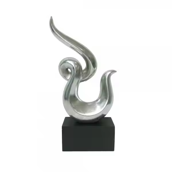 รูปปั้นอลูมิเนียมสีเงินแบบแอบสแตรกบนฐานสำนักงานบ้านรูปทรงแปลก
