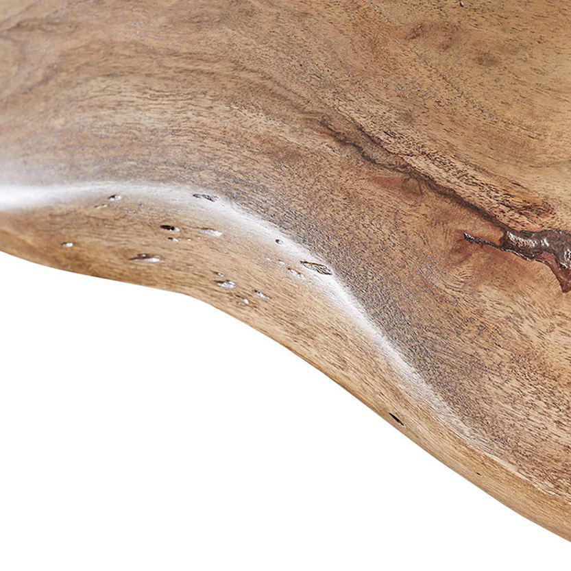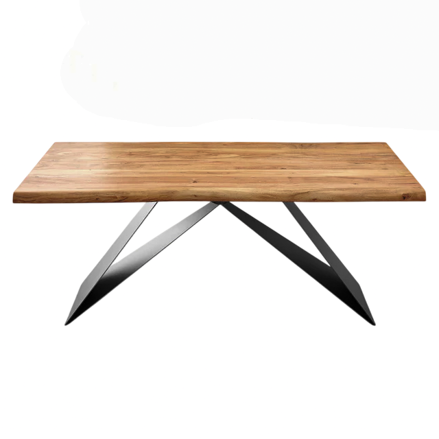 โต๊ะรับประทานอาหารทรงไม่สมมาตร หน้าโต๊ะไม้เนื้อแข็งอะคาเซียขอบธรรมชาติ ขาเหล็กแผ่นสไตล์อินดัสเทรียล ดีไซน์ทันสมัย เหมาะสำหรับบ้าน ร้านอาหาร ห้องครัว