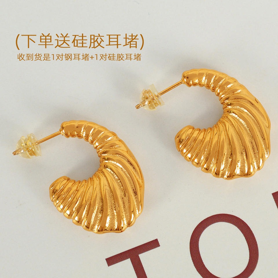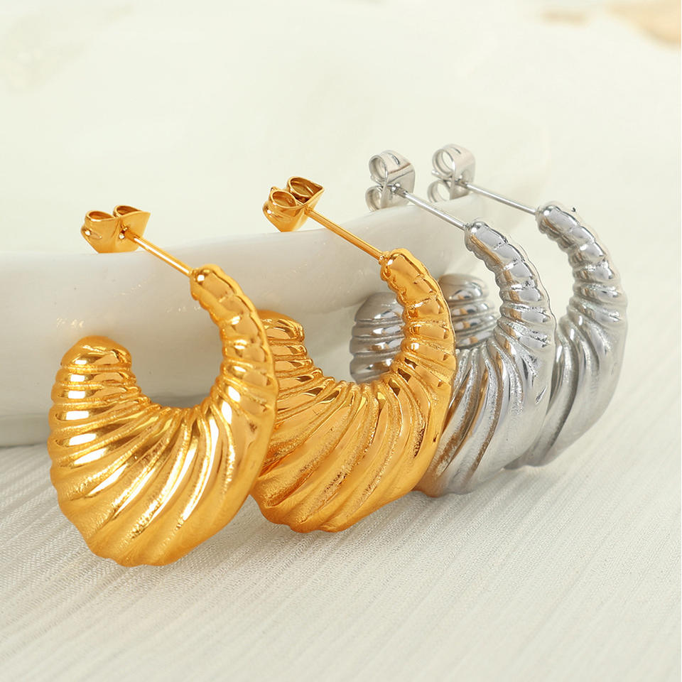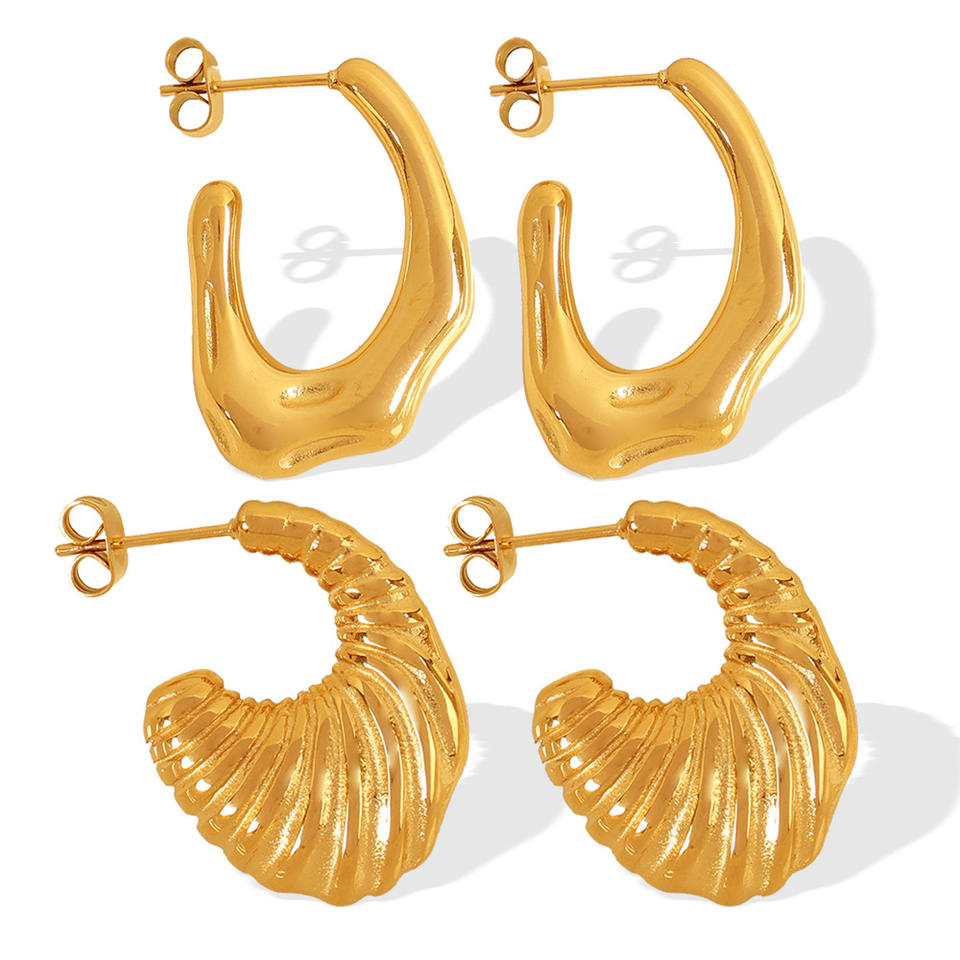 ต่างหูห่วงเกลียวแบบไม่สมมาตร ไทเทเนียมสตีล ดีไซน์เปิดโล่ง สีทอง สีเงิน เครื่องประดับแฟชั่นสำหรับงานปาร์ตี้