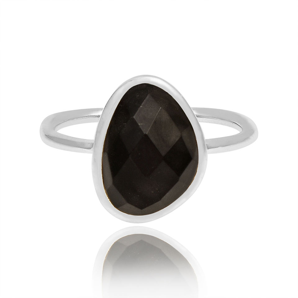เครื่องประดับที่ดีรูปร่างไม่สม่ำเสมอ925แหวนพลอยสีดำโอนิกซ์สำหรับเป็นของขวัญ