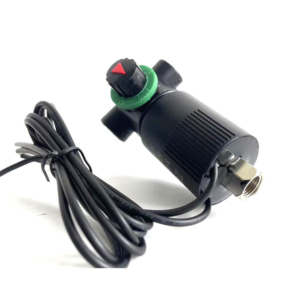 โซลินอยด์วาล์วน้ำ 3 ทาง แบบปกติปิด เปิดได้ด้วยสวิตช์แบบแมนนวล สายสีดำ 390 3 24 VDC สำหรับระบบน้ำกลางแจ้งและระบายน้ำ
