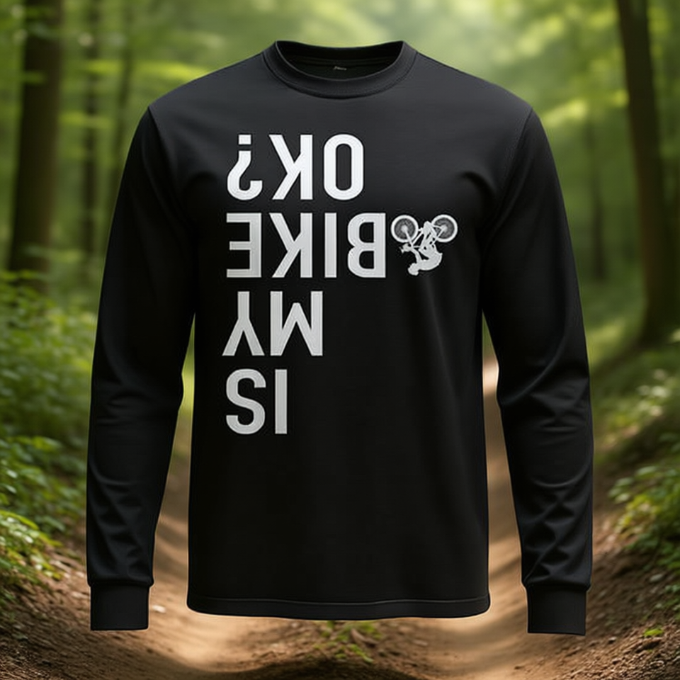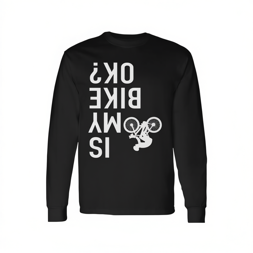 เสื้อยืดแขนยาวลายมอเตอร์ไซค์วิบากแบบกลับหัว "Is My Bike Ok"