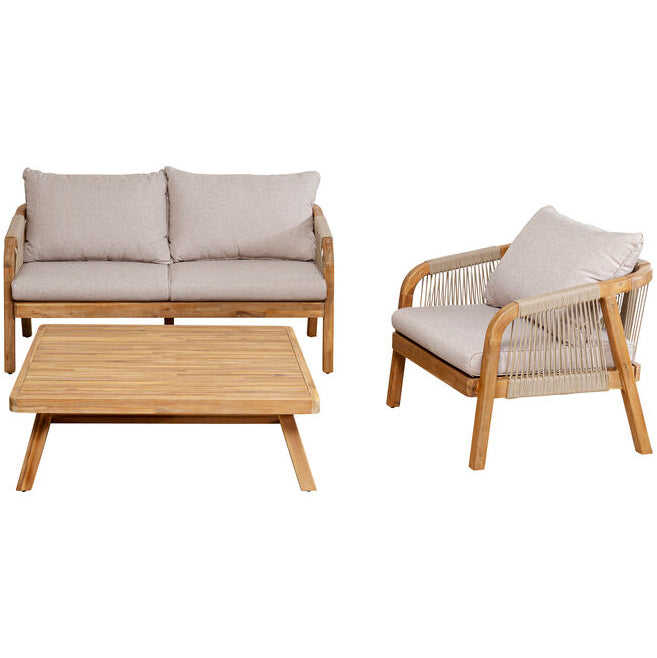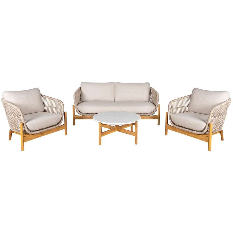 ชุดโซฟาไม้สักแท้สำหรับสวนกลางแจ้ง รุ่นอิซาเบลลา โมเดิร์น คุณภาพดีที่สุด พร้อมเบาะสีขาวถักด้วยเชือก เหมาะสำหรับห้องนั่งเล่นและเฟอร์นิเจอร์กลางแจ้ง