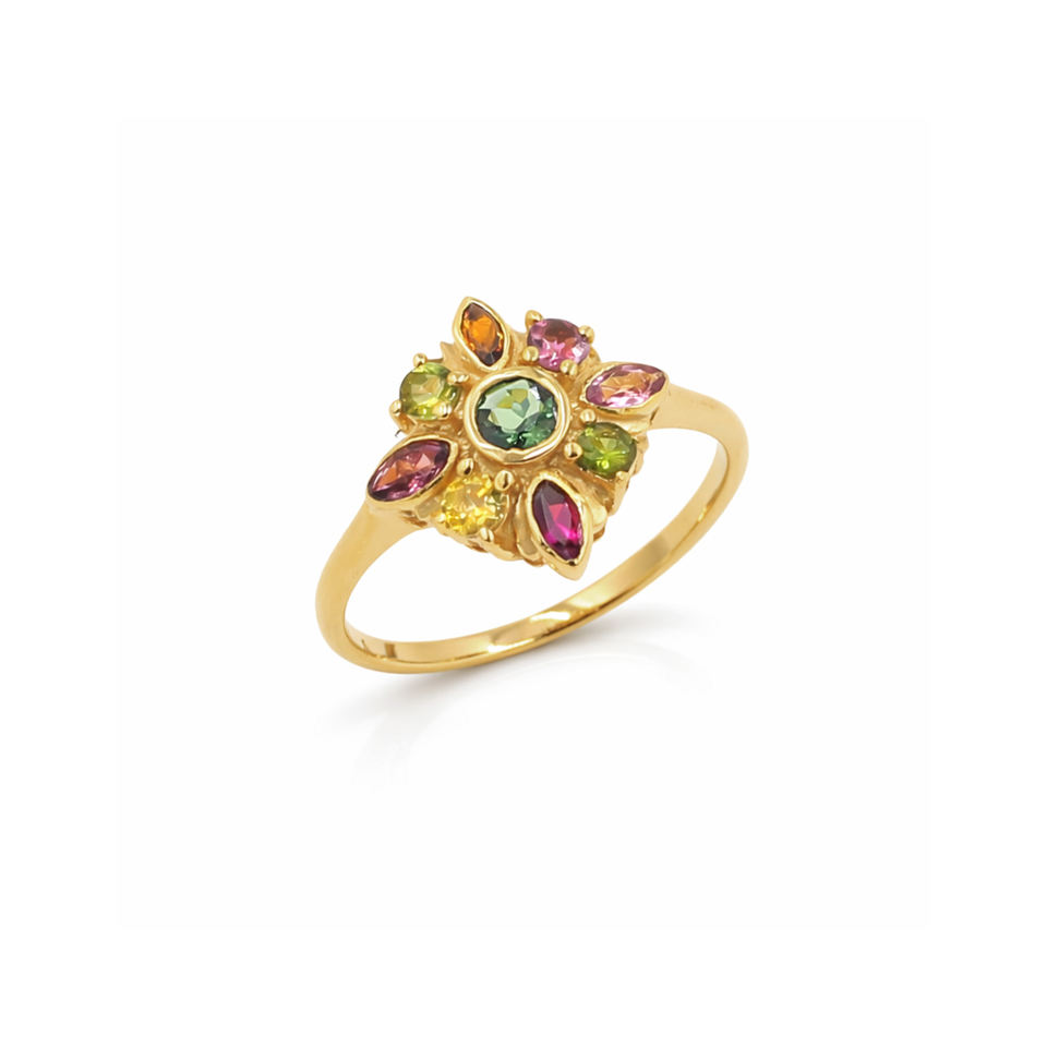 แหวนดีไซน์หรูหราประดับทองคำขาวชุบทองคำแท้ 925 ประดับด้วยพลอยทัวร์มาลีนหลากสีทรงมาร์คีส์ รุ่น MT09R จาก Ishime Jewels