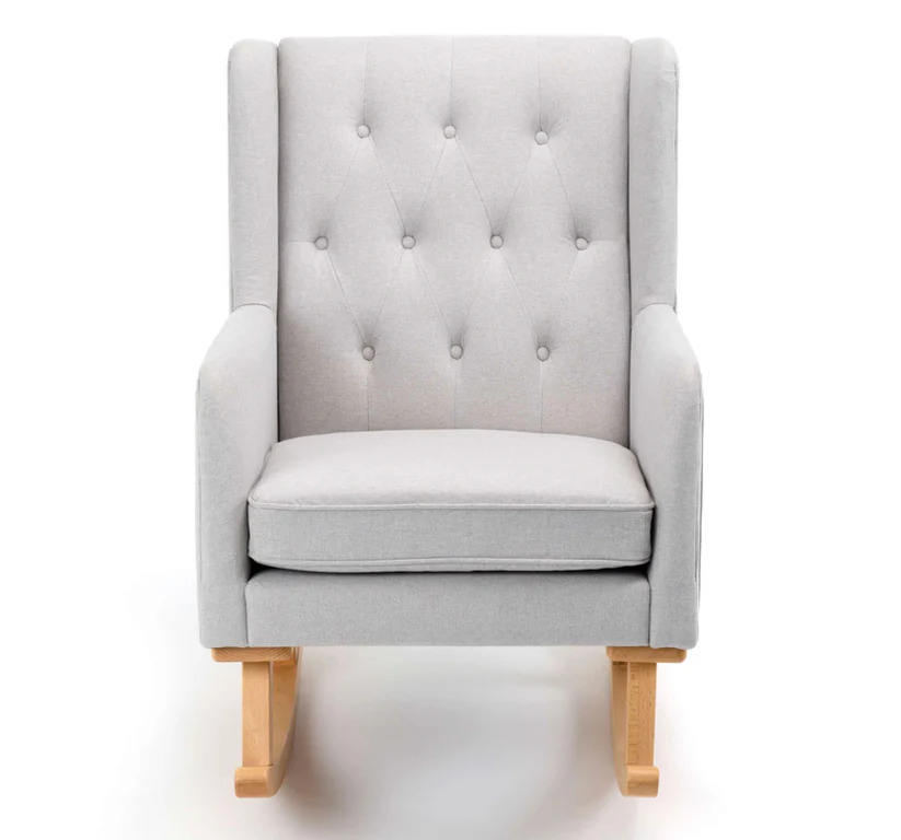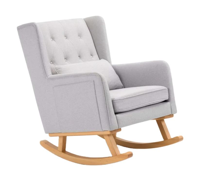 เก้าอี้โยก Isla Nursery ทำจากไม้สักแท้ ผ้าสีเทา ตกแต่งแบบธรรมชาติ สำหรับใช้ภายในอาคาร
