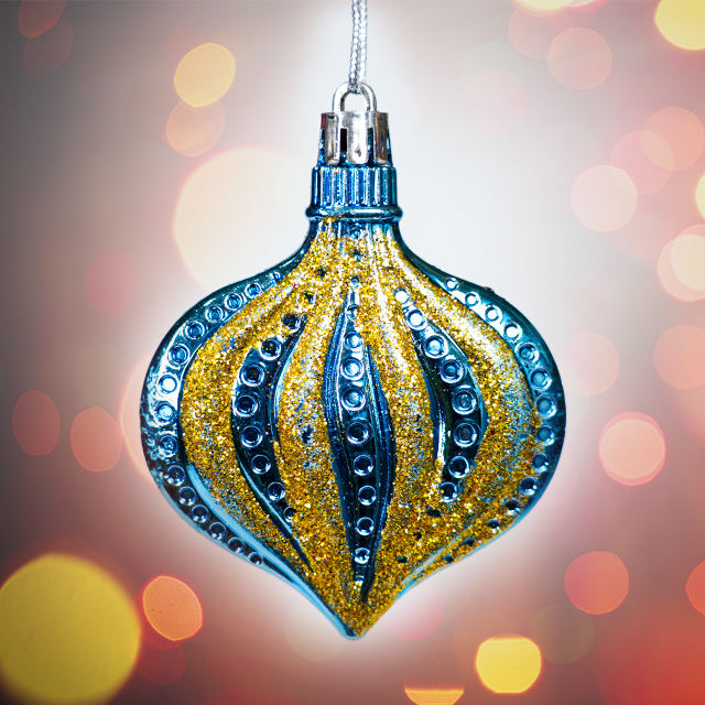 เครื่องประดับคริสต์มาสพลาสติกคุณภาพสูง สไตล์ศิลปะอิสลาม พิมพ์สีเต็มรูปแบบ ประดับกลิตเตอร์ ผลิตด้วยเครื่องจักร รูปทรงลูกบอลแขวน สำหรับตกแต่งบ้าน