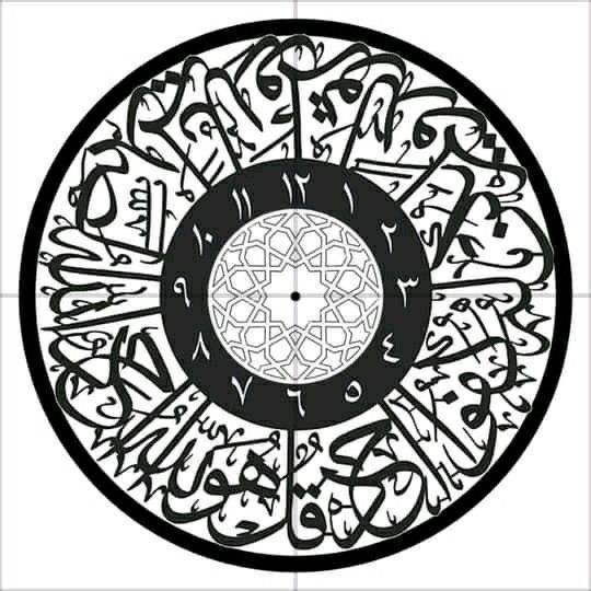 ศิลปะผนังโลหะตัวอักษรทรงกลมแบบอิสลาม-ayatul Kursi ที่มีการออกแบบศูนย์กลางทางเรขาคณิตที่ซับซ้อน