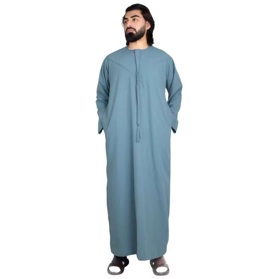 เสื้อผ้าอิสลาม Jubba Thobe สำหรับผู้ชาย Jubba สีทึบทำขึ้นอย่างมืออาชีพ