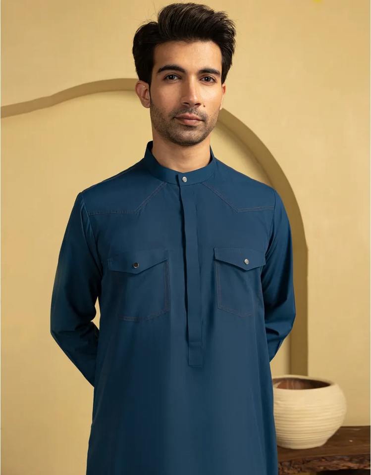 ชุดคลุมอิสลามสำหรับผู้ชาย โธบ คอทรงโอ แบบสั่งตัด พร้อมพู่ระบายอากาศ ชุดมุสลิม ซาอุดิอาระเบีย โธบ ตะวันออกกลาง แขนยาว จุบบะ