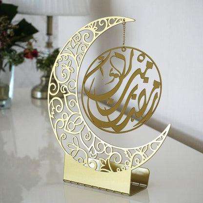ขาตั้งตกแต่งโต๊ะรูปพระจันทร์เสี้ยวโลหะแบบอิสลาม | ตกแต่งบ้านในวันอีดมูบารัคช่วงรอมฎอน