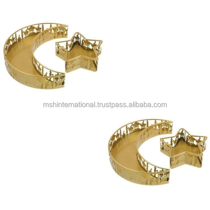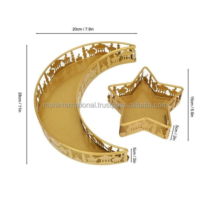 ถาดโลหะสำหรับตกแต่งแบบอิสลามถาดรองดาวพระจันทร์อุปกรณ์เสริมสำหรับเป็นของขวัญเดือนรอมฎอนถาดสำหรับตกแต่งเดือนรอมฎอน