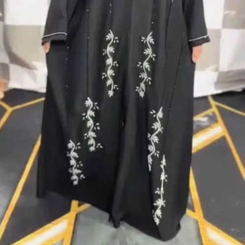 เสื้อผ้ามุสลิมแบบดั้งเดิมของผู้หญิงที่สง่างามสุภาพเรียบร้อยชุดใส่ไปงานปาร์ตี้สไตล์อาบายารวมเครื่องประดับ