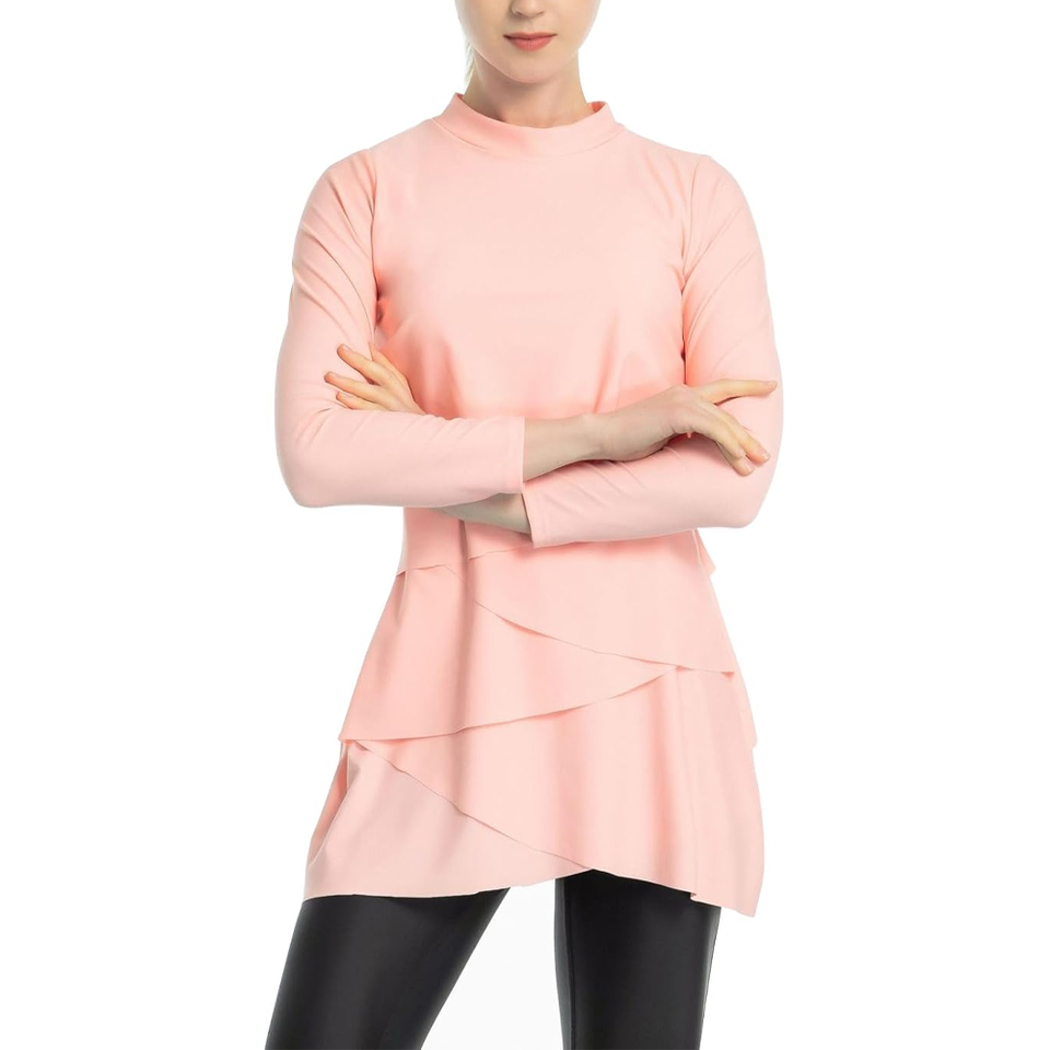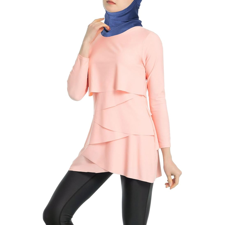 ฮิญาบแขนยาวสำหรับผู้หญิงผ้าสแปนเด็กซ์แห้งเร็วผ้าสแปนเด็กซ์โพลีเอสเตอร์