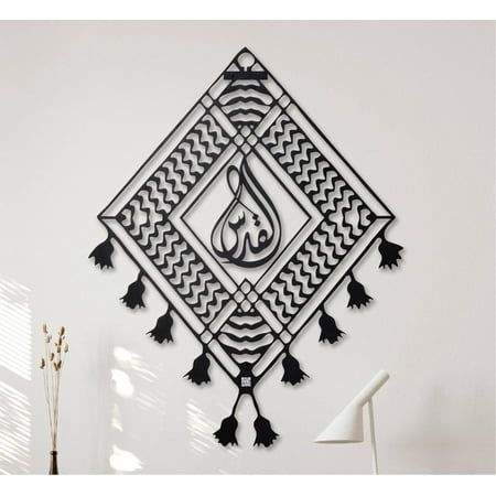 รูปลอกศิลปะติดผนังลายเรขาคณิตอิสลามมุสลิมมุสลิมศิลปะการประดิษฐ์ตัวอักษรโลหะที่ได้รับแรงบันดาลใจจากลวดลายทอแบบดั้งเดิม