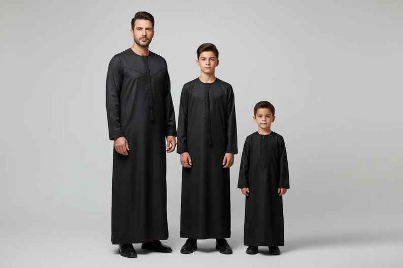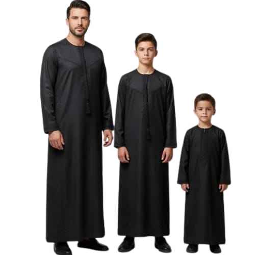 ชุดเสื้อผ้ามุสลิมผู้ชายไซส์ใหญ่ ชุดโทบยาวแบบดูไบ ดีไซน์เรียบง่าย ติดกระดุม ผลิตจากโพลีเอสเตอร์ 100% น้ำหนักเบา ระบายอากาศได้ดี