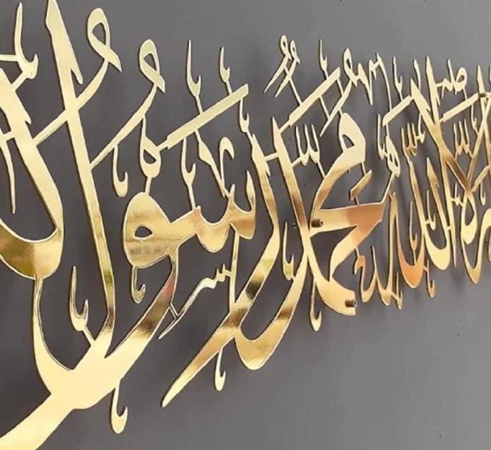 ศิลปะผนังโลหะอิสลาม-First (pehla) kalima La ilaha illah mohammad rasulallah ดีไซน์ดวงจันทร์มันวาวและกันน้ำ