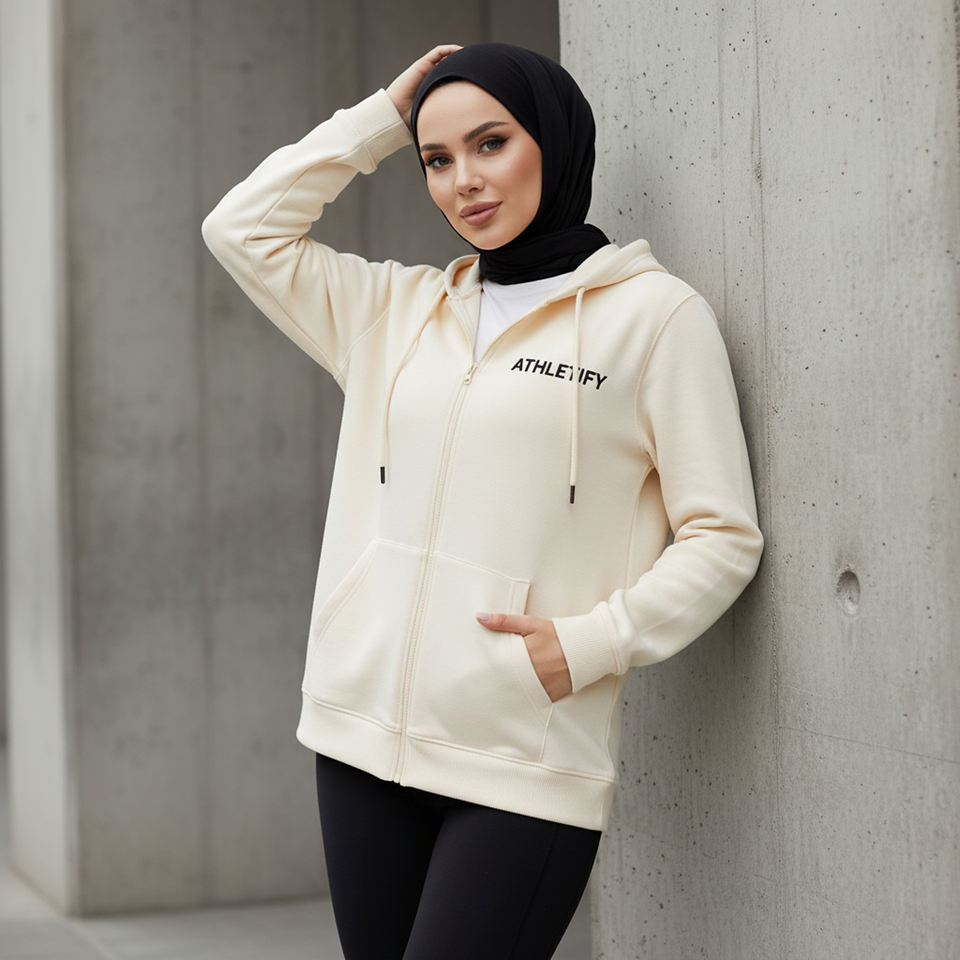 เสื้อฮู้ดมีซิปยาวสไตล์มุสลิมสำหรับผู้หญิง