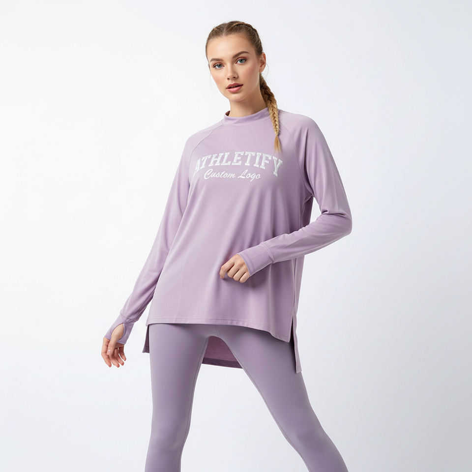 เสื้อยืดออกกำลังกายแขนยาวทรงหลวมแบบโอเวอร์ไซส์ ระบายอากาศได้ดี เป็นมิตรกับสิ่งแวดล้อม เหมาะสำหรับผู้หญิงมุสลิม ชายเสื้อแบบไฮโลว์ ทรงหลวมสไตล์เสื้อทูนิคสำหรับออกกำลังกาย