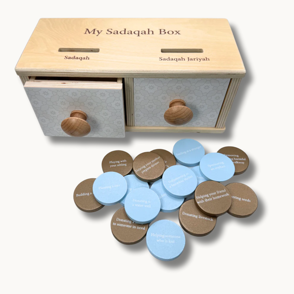 ของเล่น Montessori แบบอิสลามกล่องเหรียญการกุศลทำจากไม้สำหรับเด็กกล่องเหรียญซาดากา (มอนเตสซอรี่)