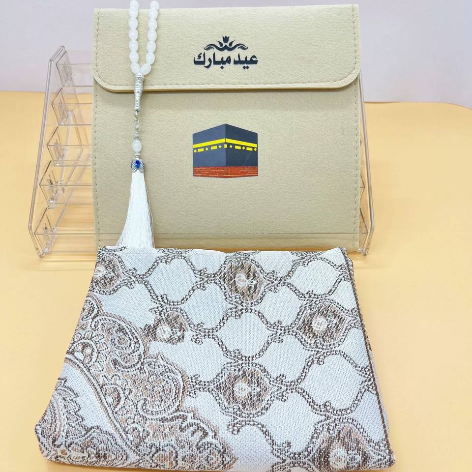 ของขวัญตกแต่งสำหรับเดือนรอมฎอนของชาวมุสลิม ลูกประคำ พรมละหมาดพกพาแบบพับได้ กระเป๋าใส่พรมละหมาด ปักลาย พรมพกพา โพลีเอสเตอร์ กันลื่น