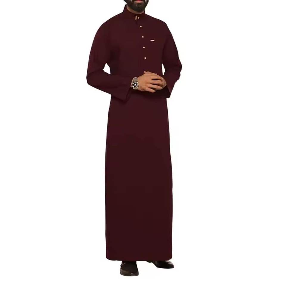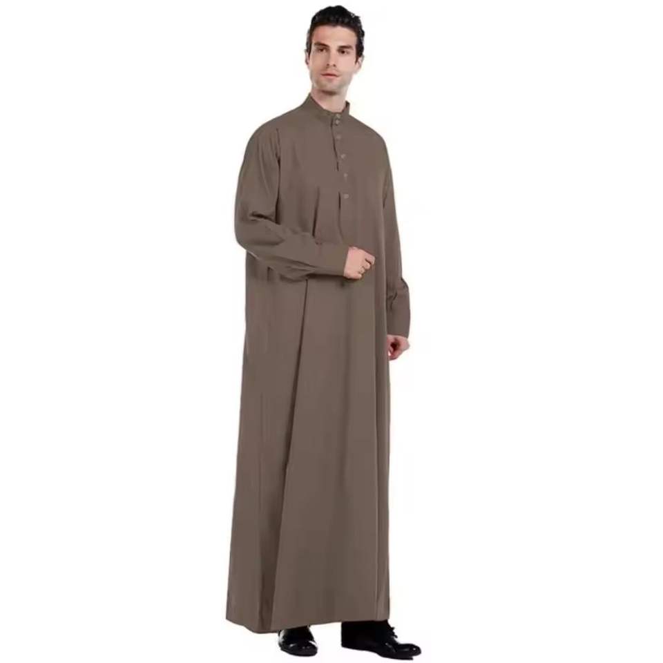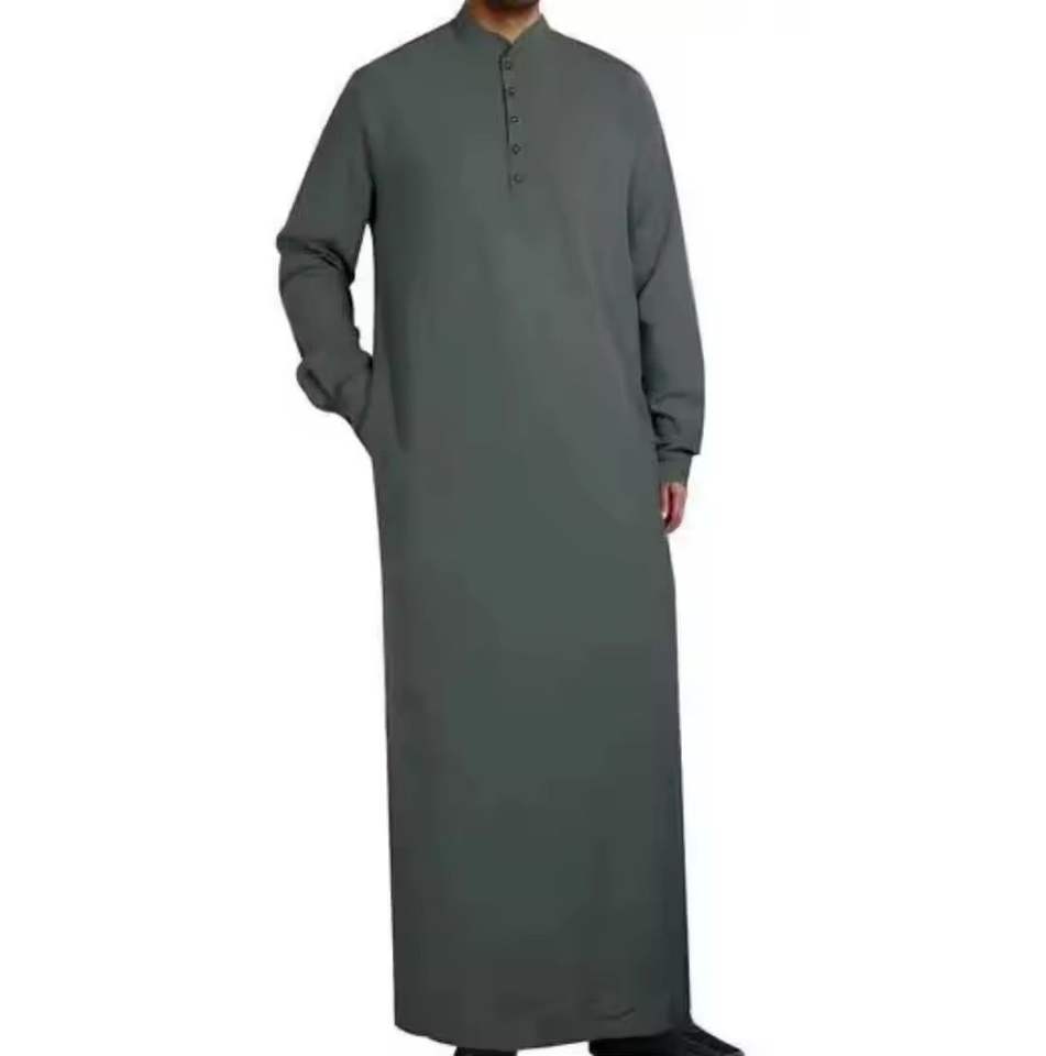 ชุดคลุมผู้ชายแบบอิสลาม ยาวคลุมเท้า ทรงหลวม ผ้าโพลีเอสเตอร์ แขนยาว สไตล์มุสลิม ลำลอง ระบายอากาศดี เหมาะสำหรับใส่ไปชายหาด คอวี