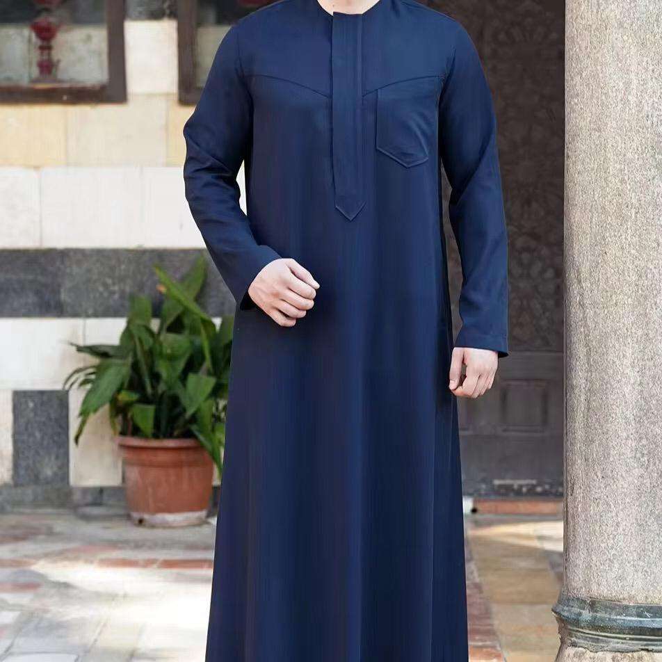 เสื้อคลุมมุสลิมแขนยาวสไตล์อาหรับพร้อมปกตั้งปักลายสำหรับชาวมุสลิม