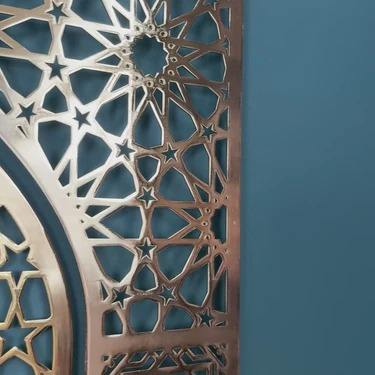 งานศิลปะติดผนังแบบอิสลาม ดีไซน์โดมมิร์ราบสีทอง สำหรับตกแต่งร้านค้าอิสลามหรือศูนย์วัฒนธรรม