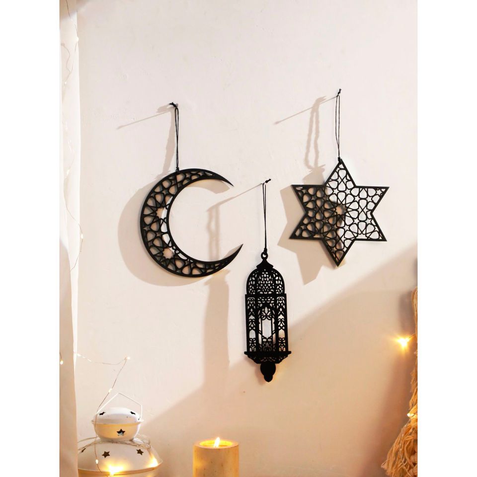 ชุดตกแต่งผนังแบบอิสลาม รูปพระจันทร์เสี้ยวและดาว โคมไฟตกแต่งรอมฎอน อีด ของตกแต่งบ้าน ศิลปะแขวนผนัง