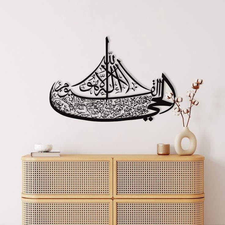งานศิลปะผนังโลหะของอิสลามแสดงข้อความจากคัมภีร์กุรอานที่สมบูรณ์แบบสำหรับห้องสวดมนต์หรือการตกแต่งมัสยิด