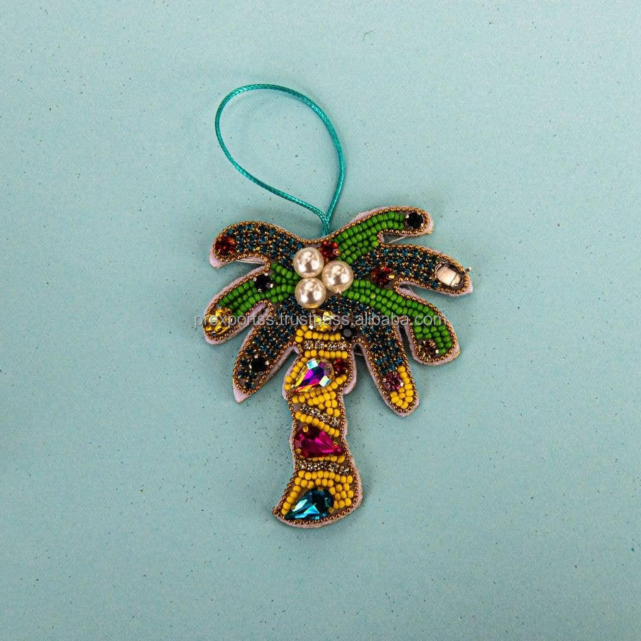 เครื่องประดับแขวนตกแต่งบ้านสไตล์ทรอปิคอล ทำจากสแตนเลสสตีล ประดับด้วยลูกปัด ปักลายต้นปาล์ม ประดับเลื่อมและคริสตัล แบรนด์ Island Glow Christian Trendy