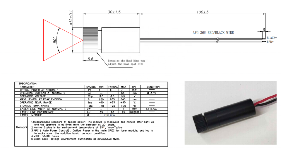 ชื่อผลิตภัณฑ์:โมดูลเส้นตรงเลเซอร์สีแดง