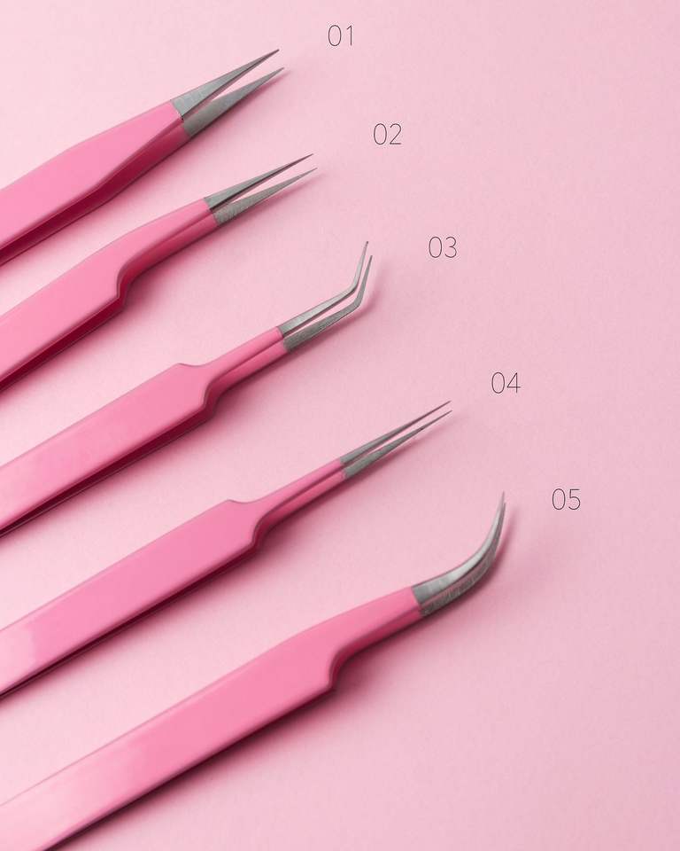 ชุดแหนบปลายขนตาทำจากเส้นใยสีชมพู