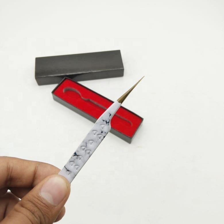 แหนบปลายแหลมสแตนเลสพิมพ์ลายหินอ่อนสำหรับขนตาปลอมเครื่องมือยกขนตาปลอมแบบยั่งยืน