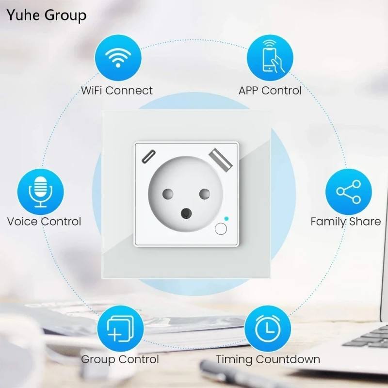 ปลั๊กไฟติดผนังแบบสัมผัสอัจฉริยะมาตรฐานอิสราเอล พร้อมพอร์ต USB-C และ WiFi สำหรับใช้ในบ้าน