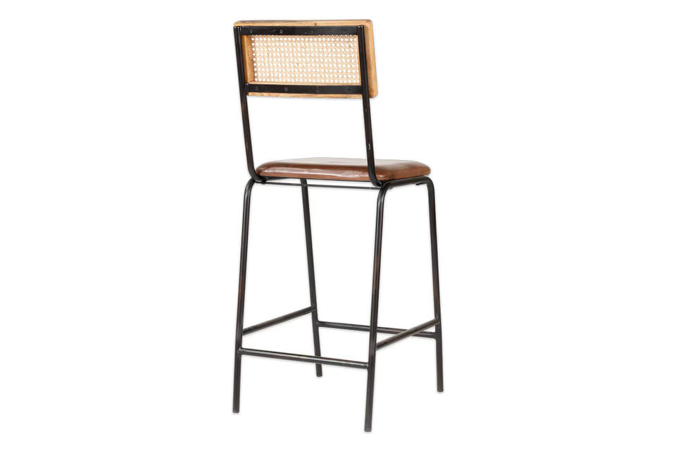 เก้าอี้บาร์หนังพรีเมียมพร้อมพนักพิงหวายธรรมชาติ สำหรับเคาน์เตอร์บาร์ คาเฟ่ ร้านอาหาร โรงแรม ล็อบบี้ เก้าอี้เคาน์เตอร์บาร์ทันสมัย