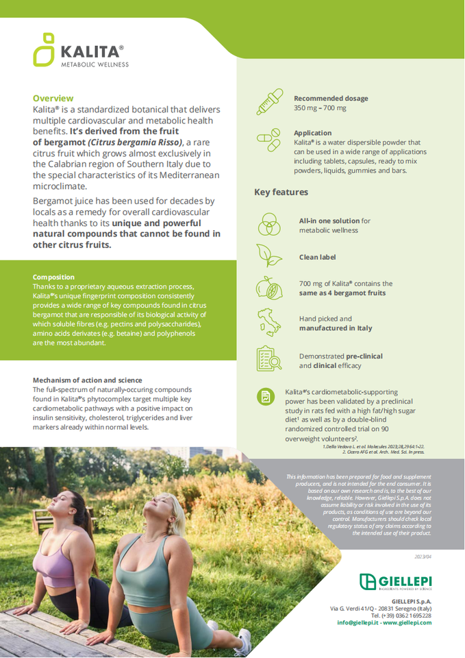 คาลิต้ามะกรูดผงวัตถุดิบจากอิตาลีโซลูชันครบวงจรสำหรับการเผาผลาญเพื่อสุขภาพ