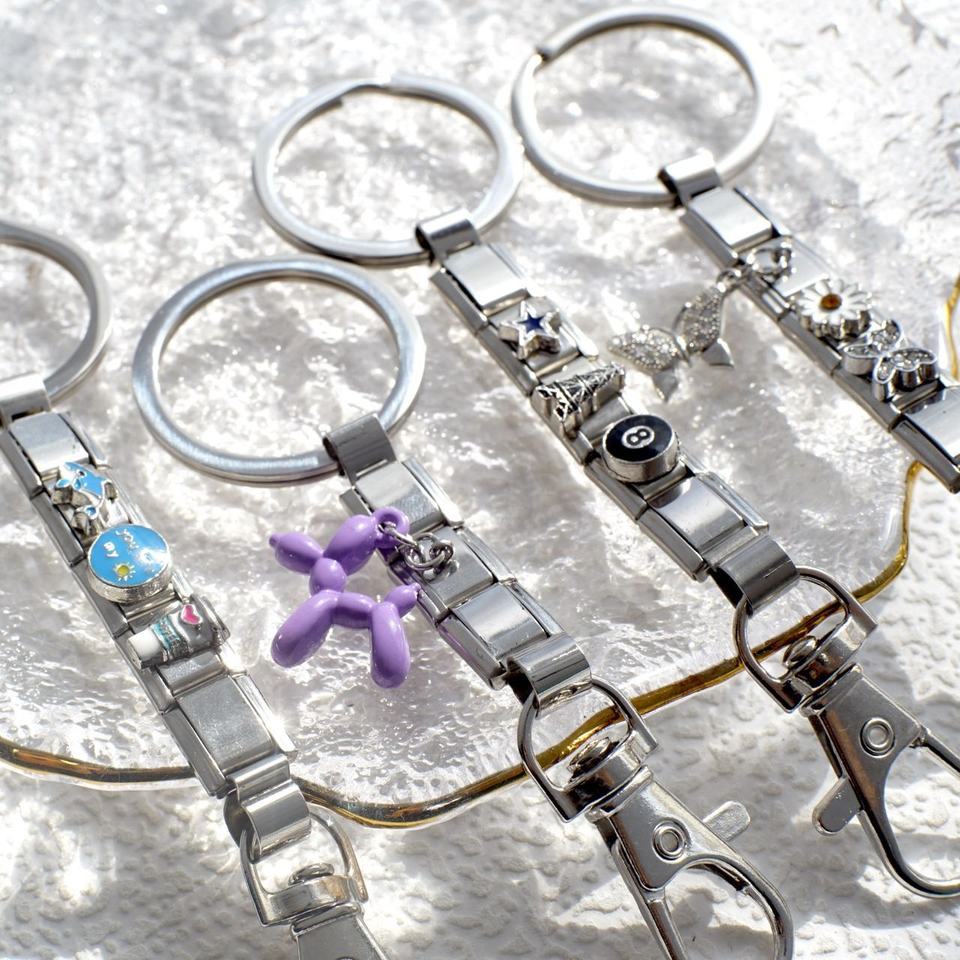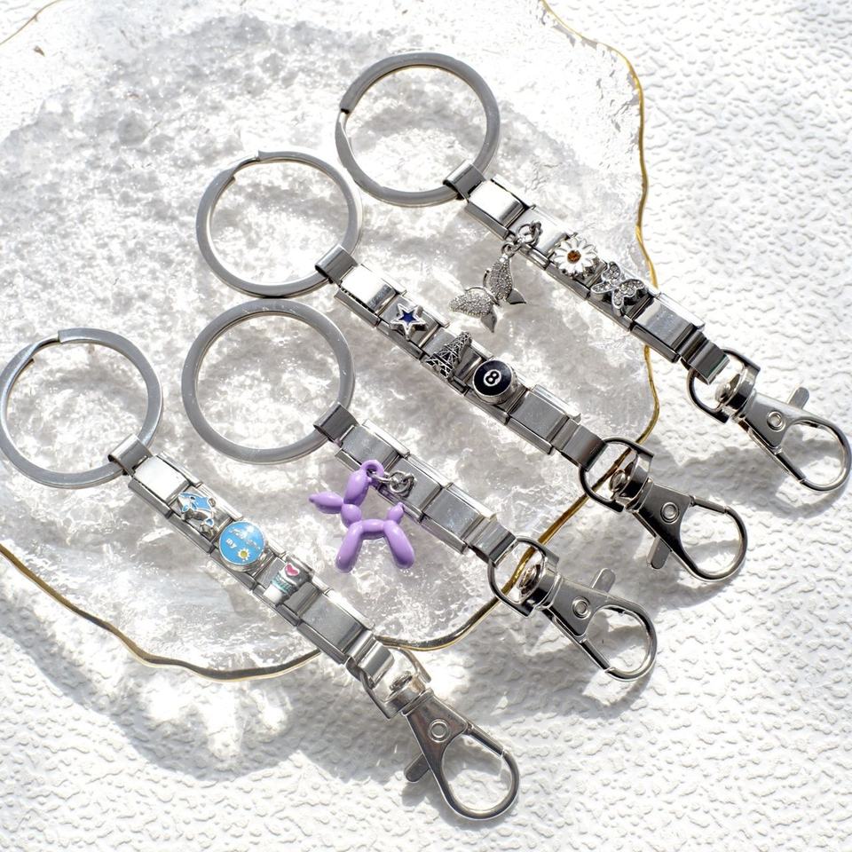 พวงกุญแจสไตล์อิตาลี DIY แฟชั่น ลูกบอลสแตนเลส รูปสุนัข ของขวัญคริสต์มาสสำหรับเพื่อน แบบโมดูล