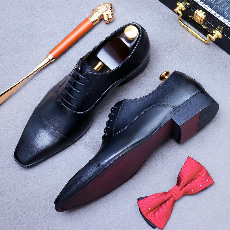รองเท้าอ็อกซ์ฟอร์ดดีไซน์อิตาลีขนาดใหญ่สำหรับขายส่ง รองเท้าลำลองแบบทางการสำหรับผู้ชายพร้อมคุณสมบัติเพิ่มความสูง หัวรองเท้าทรงเหลี่ยม