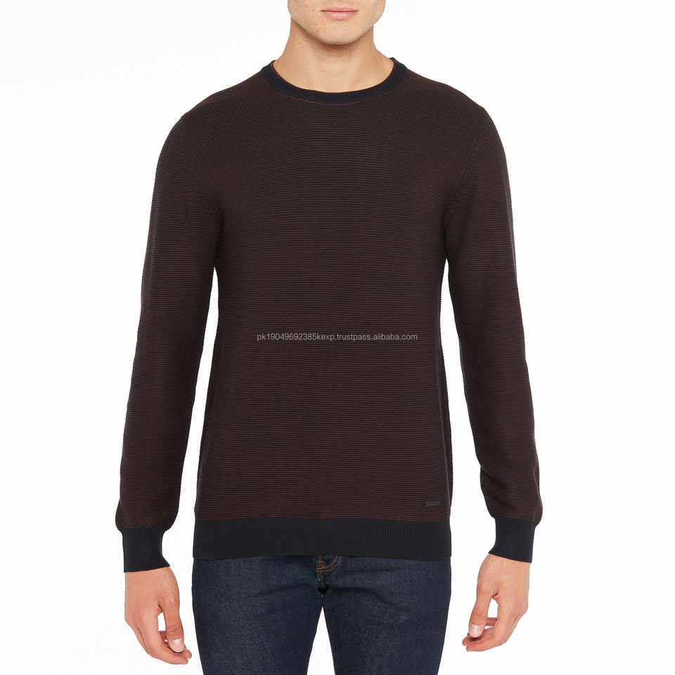 เสื้อสเวตเตอร์คอกลมแขนยาวสำหรับผู้ชายเสื้อสเวตเตอร์ผ้าย้อมสีพื้นดีไซน์แบบอิตาลี