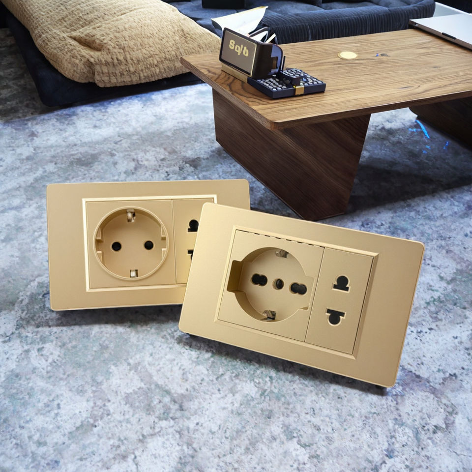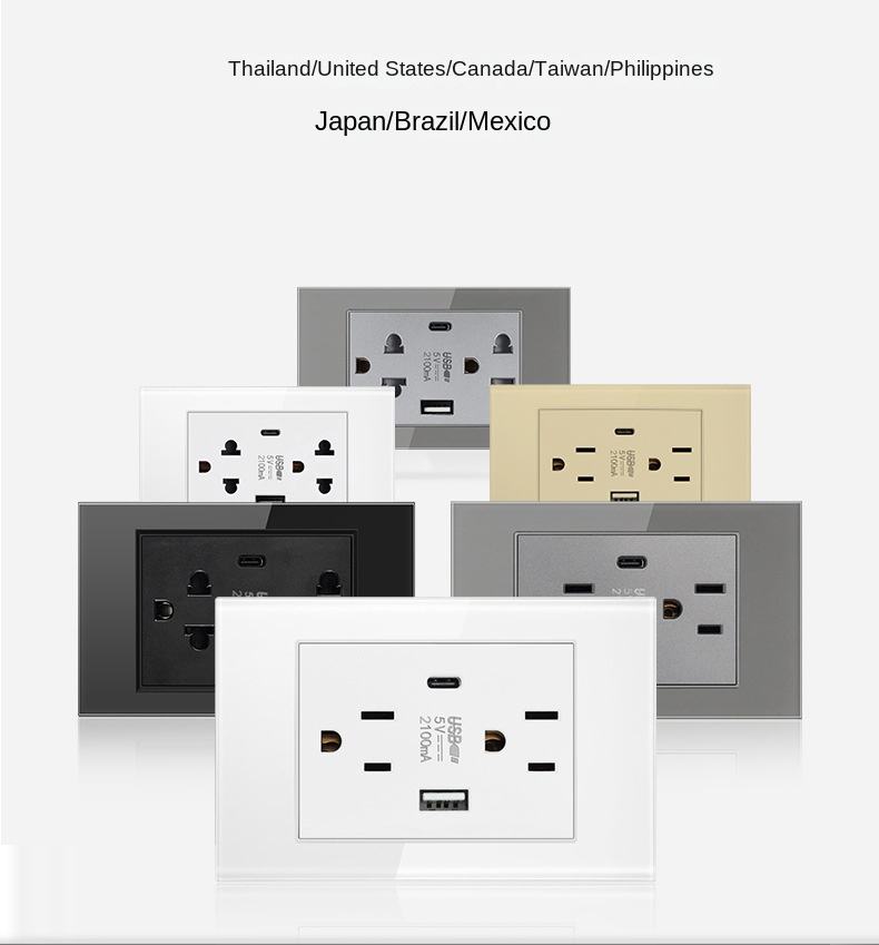 เต้ารับไฟฟ้าติดผนังแบบยูนิเวอร์แซล 2 ขา มาตรฐาน EU ของอิตาลี พร้อมพอร์ต USB-A 3 ช่อง และพอร์ต USB-C 3 ช่อง รองรับกระแสไฟ 16A แรงดันไฟฟ้า 110-250V