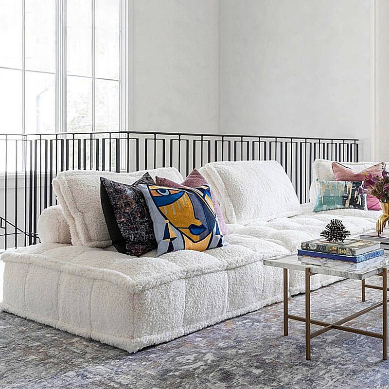 โซฟาผ้าสี่เหลี่ยมสไตล์อิตาลี รูปทรงตัวแอล บุโฟมลายพิมพ์นามธรรม สำหรับเฟอร์นิเจอร์ห้องนั่งเล่น